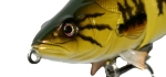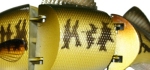 The trout pattern isn’t half bad either.  It’s a pale trout pattern but I like that for clear water.   You get a slight green tinge to water with ten foot visibility and this paint job really starts to look yummy.  The fins are matched well enough to the body and River2Sea took the time to paint the top of the tail a darker color to match the back of the lure.  A more transparent set of fins and a black edge to the tail on the bass pattern would have made me even more excited to push the ‘Add to Cart’ button but they let the light through OK.