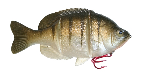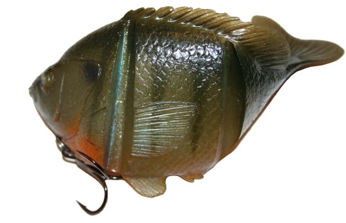 Even before I put it in the water, the first Platinum Sunfish I picked up really caught my eye because of the perfect shape. Most bluegill imitators sacrifice lure shape in order to achieve swimming action, but Castaic has really nailed the lure shape with this Sunfish. In all regards, the lure is shaped exactly like a real bluegill or redear. The detail in the molds is spectacular and accurate down to the scales, lateral line, and individual fin rays. I absolutely love the shape of this lure.