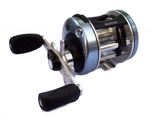 Introduced in 2005, the Abu Garcia D6 6600 adds a light, compact, and high-speed round reel to their freshwater line-up. The D6 diverges from the classic Ambassadeur series with several new features. These include the SmartMag brake system, which combines the spool tension with a magnetic brake. The reel's exterior frame was also redesigned. It is lightweight, weighing in at only 9.3oz, and compact without any of the sharp edges you see on the C3/C4 series. The reel features a high-speed 6.3:1 ratio, powered by a vented soft-paddle handle. Other features include 6 bearings, a clicker, and a disengaging level wind.