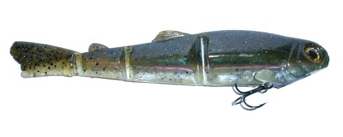 The Sidewinder debuted in November 2002. The Sidewinder is definitely unique in the swimbait market because it simply has no bill. The action of the lure comes from the shape of the head, and the rest of the jointed body just follows along behind the head. The faster you reel it, the harder it kicks back and forth, generating a spastic action at high speeds. At slow speeds, the bait has a lazy side to side kick, and tends to angle downward if you go slow enough.