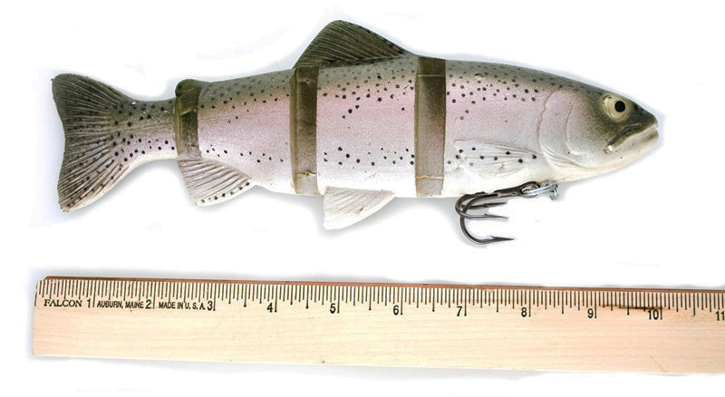For this review I sampled one bait in each size. They all swam beautifully out of the package. The action is like the platinum but stronger. You'll feel the bait kick more and notice the stronger swimming action at fast speeds. The 10" bait reminds me (in a strange way) of the 10" Stocker Trout in the way it swims. Not that the lures look anything alike, but they just have a similar motion through the water.