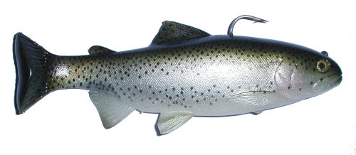 Realism, realism, realism. Wow, when you get this bait and have a close look at it, the way it's done up is just extremely trout like. If you laid this bait on the ground next to an 8" trout and walked back 10 feet, they'd look pretty darn similar. I'm very impressed by the level of detail for a rubber bait. It's little things like the way the line tie and wire loop on the belly are imbedded inside the bait that can give you that extra edge and maybe get you a few extra bites. Overall the reports on the Huddleston are very good and it's a bait that generates a lot of bites.