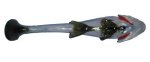 Another interesting feature on this bait is the bottom fins. The bottom fins are intentionally colored more darkly than the rest of the lure to help mask the hooks. If you look at the bottom and side pictures of the 9" lure above, you'll notice the hook really blends into the fins making it more difficult for the bass to see. And since most of us like to use stinger hooks on baits like this, the bait has a second set of fins to mask the stinger hook. It's really a pretty clever setup.