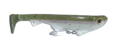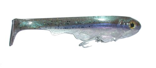 This bait is pretty much obsolete at this point IMO. The flat back made it easy to pour, but the result is a less than realistic shape. A far greater problem with this bait, however, is that it's extremely picky about how it can be fished. Most baits I tried had a very narrow speed range they could be fished without rolling on their side. A little slower or faster and they'd keel over. I tried all the tricks with nail weights and hook placement but it never seemed to help much. Without extra weighting, they also take a long time to sink, which makes them tedious to fish. Although it can get some huge bites on occasion, this bait is just too high maintenance to throw day in and day out.