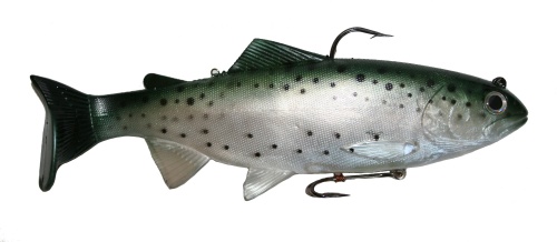 I say this because when you study the action of the lures they just don’t seem “right”. The 10 inch model has a dodging action (like a surface iron for ocean fishing) and to me this signals that the tail of the lure is too large, too stiff, or both. The head down attitude of the fast sink models in all sizes also feels wrong. Fish swim with their bodies parallel to the surface of the water, they do not swim with their head down.