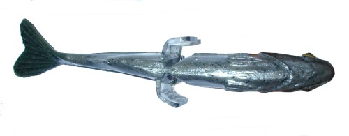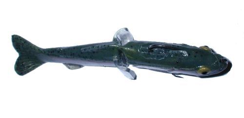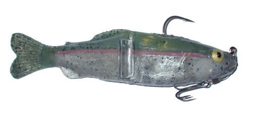 History/Overview: The Stocker Trout is made by Rod and Todd Thigpin and was first introduced in the early 90's. For whatever reason this has always been a pretty low profile bait, but this is unquestionably a pig catcher. Over the years there have been a ton of giant bass, stripers, etc caught on the Stocker. The Stocker Trout's unique 'wings' that cause it to swim are still completey unique on the swimbait market. The lure is heavily weighted with an internal hook/weight contraption in the font half of the lure. All three models (7, 9 and 10") can be fished from the surface to as deep as you want to let it sink. They are very versatile in this regard.