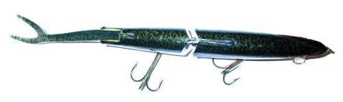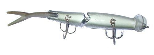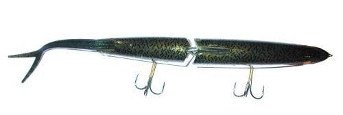 The most commonly available size is 12 inch however there are 7,9,12, and the monster 16" versions out there. Another thing to note about the bait is that there are two variations. A wood version and a synthetic version. What Jerry makes the synthetic one out of is a secret, but the two are virtually indistinguishable without taking a knife and cutting into the lure.