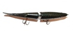 The number one thing about this bait is the realism of the profile. Check out the higher resolution pics above and from all angles you can see that this bait is shaped just like a trout. Also, the hard fins are molded into the bait, making them less prone to breakage. Could you snap one off on a rock, sure, but that's your bad ). The action on the bait is very fishy and it has a much wider kick than the original Generic Trout. This bait has a lot of what you might call 'head wobble' where the head of the bait kicks side to side almost as much as the tail. If you bump the bait off of cover, it shoots off and really looks good. I love the hook placement and the fact that it has two hooks so you can hook and lend a good number of the fish that hit it.