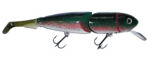 The SLO Trout as the name implies is made in San Luis Obispo, CA by Mark Hinson. The bait was debuted in early 2004 and comes in two sizes, 9.5" and 11". It's a wood hardbait, with a metal bill and let me tell you this is one BIG bait. It's girthy like nobody's business. This is a hand made bait made one at a time.