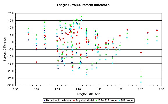 Although the models presented above provide a more accurate estimate for a trophy bass’ weight than models of the past, a larger sample size of bass in the 18 to 20 pound range must be analyzed. Users of these models must understand the deviations from actual weight when applying these models to their catches. Also of interest were the results from the L/G versus Weight Percent Difference study. The reason this is interesting is shown along the L/G line at values between 1.15 and 1.20. Fish that fall within this interval are quite accurately estimated in weight with an under estimate no greater than weight 5%. This was of particular interest to me in this study due to the latest fish that was submitted for a world record. This fish, having an L/G value of 1.16 and using the empirical model, would have been estimated to weigh between 17.94 lbs and 18.83 lbs instead of the 22.5 lbs claimed.