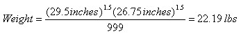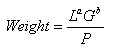 Another method used in developing a weight estimation model was to keep the sum of the length and girth exponents equal to three but vary their values through a number of least squares curve fits. This would still give units of volume, which is dimensionally sound, but allows the modeler to not be constrained completely by the individual exponential values. An example can is shown in Equation 7.