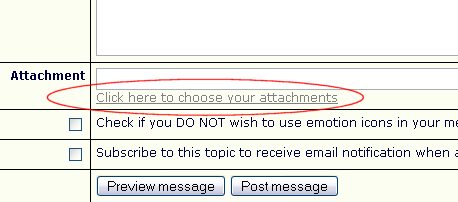 Now go back to the window where you are composing your message. You will see that a link to your picture has been automatically inserted in to your message. Do not delete this link! You will also see that there is now a file name in the Attachment section below your post. Do not delete this file name!