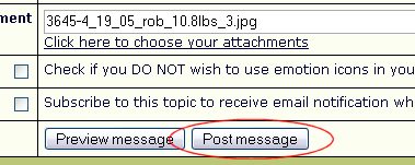 Now you can either upload more photos using the upload window (which should still be open) or you can type your post and get ready to post it. No matter what you do, you should always use the preview feature to check and make sure everything looks ok BEFORE you actually post the message. When you click on the preview button, you should see something like this (a picture!):