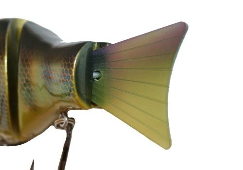 The tail is transparent and dusted with a light coat of yellow, or yellow and purple haze. Most importantly the tail is made from lexan and can swing freely from side to side as well as up and down. This play in the tail, coupled with the fact that the tail does not stick out too far, makes it unlikely that bouncing the lure off the shore will break it. I'm generally not a fan of hard tails on lures but this one is well done. Another nice thing for the fisherman who makes the occasional errant cast is the fact that the baits are finished with a thick coat of clear epoxy. I've tossed these guys around a fair amount and they show no sign of wear.