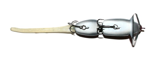 There are a few interesting construction details to discuss with the Nezumaa, the first of which is the tail. I believe the tails are hand poured, and they are affixed with a metal pigtail mounted to the butt of the bait. This design allows you to quickly and easily replace the tail with no glue or special tools (just unscrew the old one and screw on a new one).