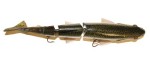 The Rago Tool became available in the fall of 2005 after a considerable period of R&D and testing. This hand made hardbait measures 13” inches and weighs in at a whopping 13.5oz. The body is molded from a composite material and the tail is soft plastic. The baits come stock with some seriously magnum sized 7/0 Mustad treble hooks and the hardware is all x-heavy including screw eyes and split rings. The production version of the tool is lipless but there are also some models floating around out there that have a removable lip. For this review we’ll discuss the production version only.
