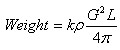 Now, in order to make this volume expression relate to weight or, more correctly mass, one must multiply volume by density, r, as shown in equation 3. Once this is done, an expression for weight has theoretically been developed.
