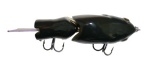 The Black Dog Bait company was formed in the fall of 2006 and the Shellcracker is their first offering in the big bait market. This wooden bluegill imitator measures 5.5" in length and 2.5" from back to belly. There are two versions of the lure available: A floating "wake bait" version, and a sinking version. The sinking bait is a slow sinker that moves naturally in the 1-3 foot depth range. I weighed both versions at 3 and 1/4oz. There are currently two colors available, a bluegill and a redear. Each bait comes stock with 1/0 Daiichi hooks, black/chrome finished snap, taxidermy grade eyes, and a lexan tail.