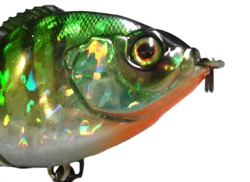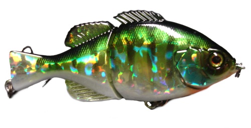 The bait swims in an "S" pattern and is very subtle. It has no rattles and the action is very good. I stuck a lot of fish on this bait on my first outing. Fish in the 2-6 pound class were all over it. I see the potential when the BG spawn and the lake is loaded with the little ones.