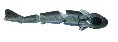 The Sidewinder debuted in November 2002. The Sidewinder is definitely unique in the swimbait market because it simply has no bill. The action of the lure comes from the shape of the head, and the rest of the jointed body just follows along behind the head. The faster you reel it, the harder it kicks back and forth, generating a spastic action at high speeds. At slow speeds, the bait has a lazy side to side kick, and tends to angle downward if you go slow enough.