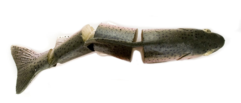 The Castaic Catch 22 was released at the Bass-a-Thon show fall of 2008. There are, a the time of this review, four sizes which are available in 2 sink rates per size (floating and slow sink). Retail price ranges from around $23 for the 10" model to $13 for the 4" model. The initial color offering was rainbow trout, but more colors are coming soon with a ghost rainbow included among several other options. The Catch 22 comes with a single "Treble Claw" hook which is a Castaic exclusive.