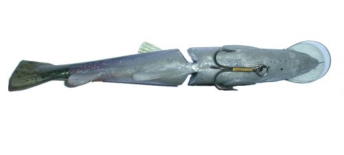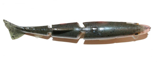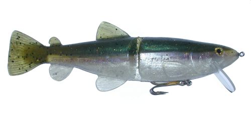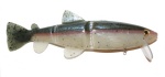 History/Overview: The Rago Live Trout Soft Bait is the sister bait to the hardbait. They are basically from the same mold and were released in the fall of 2003. This bait is a medium sinking bait that can be fished from the top on down about as deep as you care to let it sink. This is a fairly heavy bait requiring a solid swimbait setup and it measures in at 9.5” long.