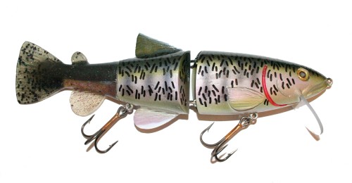 The Live Trout came out in the fall of 2003 in limited numbers. Like all of Jerry's baits, it is hand made and hand painted. And like the original Generic Trout Hardbait, it's really a work of art. The bait is made from some sort of composite material, and is balanced to float with just a little of it's back out of the water. The Live Trout has a pretty good sized bill and dives about 5 to 8 feet on a long cast. You can work the bait on the surface, but only if you are willing to work the lure very slowly.